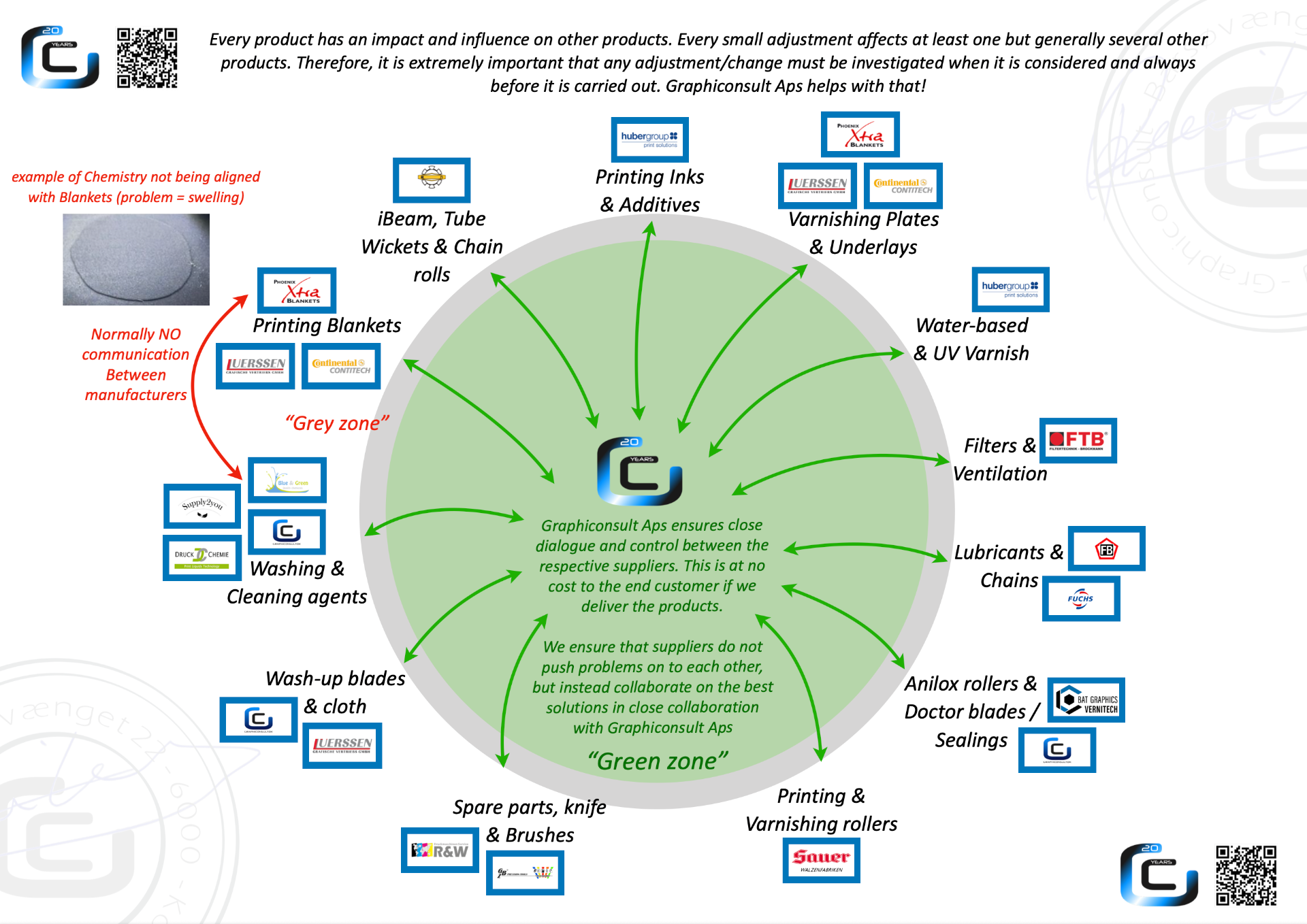 We ensure that suppliers do not push problems on to each other, but instead collaborate on the best solutions in close collaboration with Graphiconsult Aps